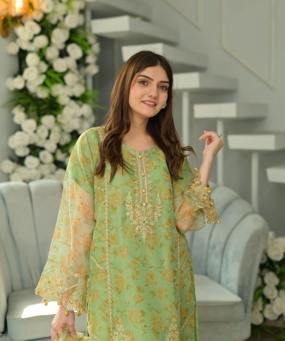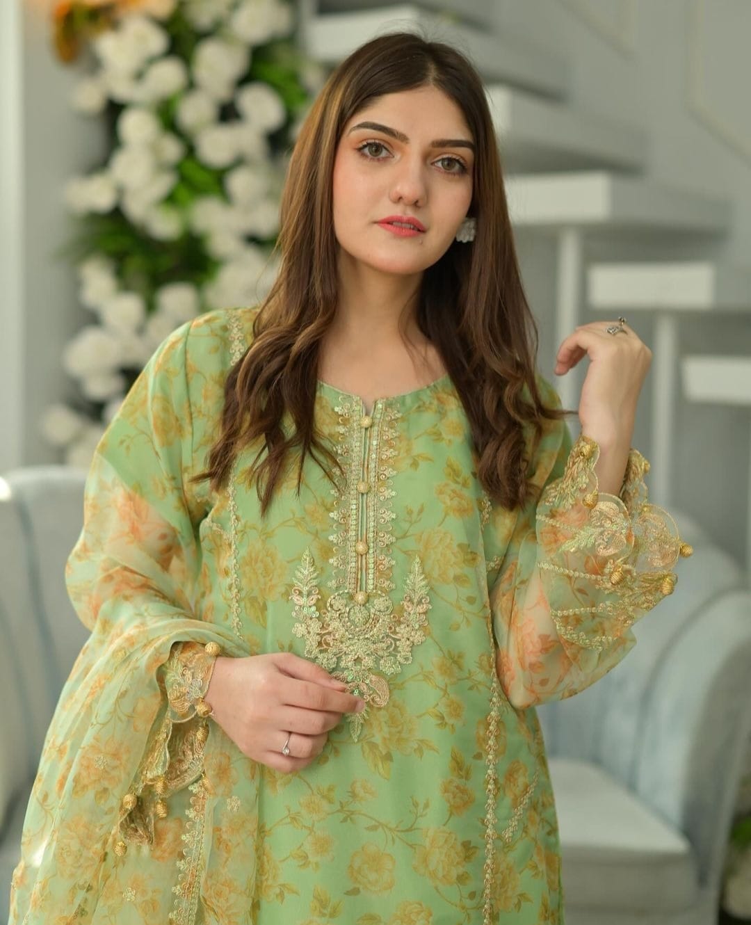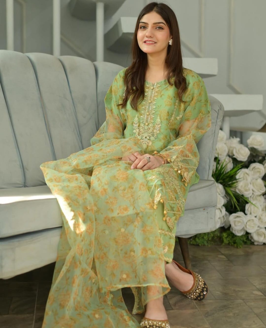 Description: Organza Shirt, Grip Trouser & Organza Dupatta