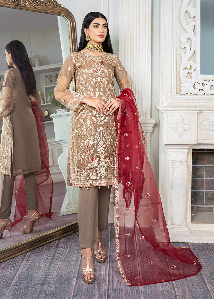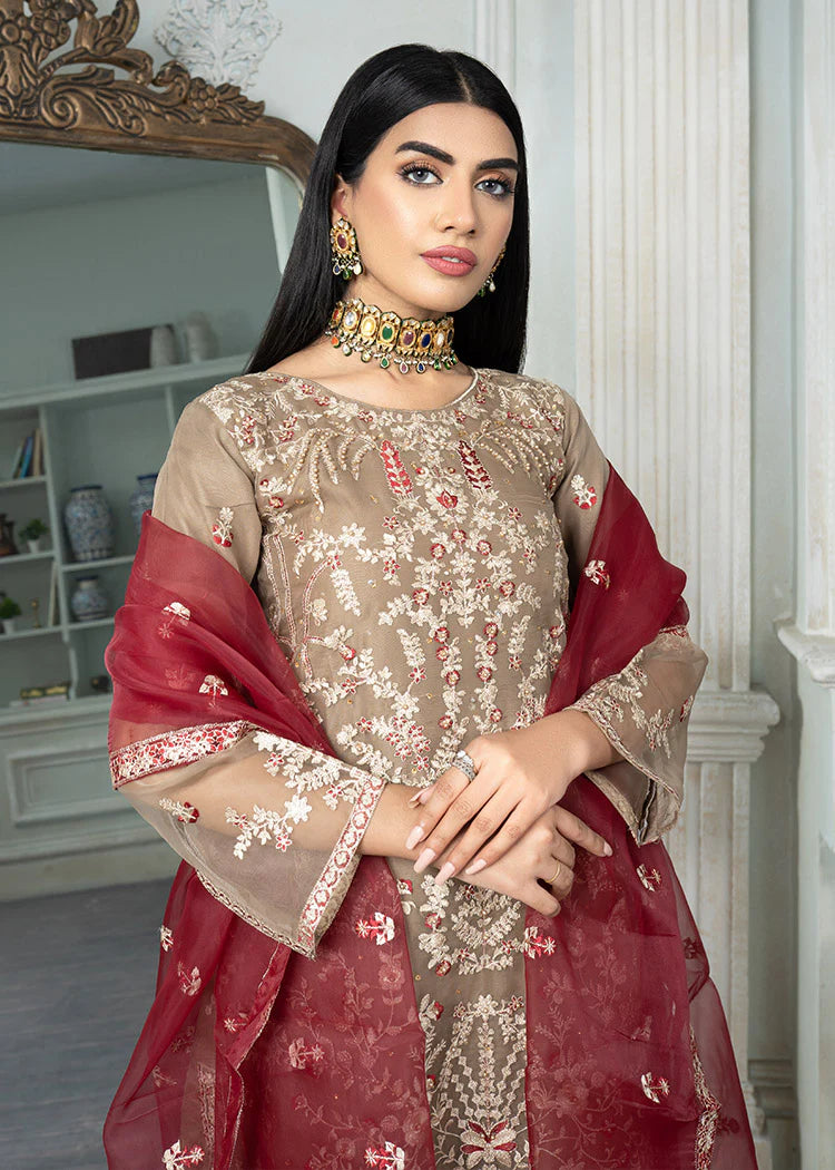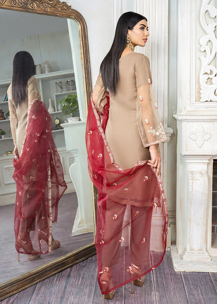 Description: Embroidered Organza Shirt, Viscose Trouser and Embroidered Organza Dupatta