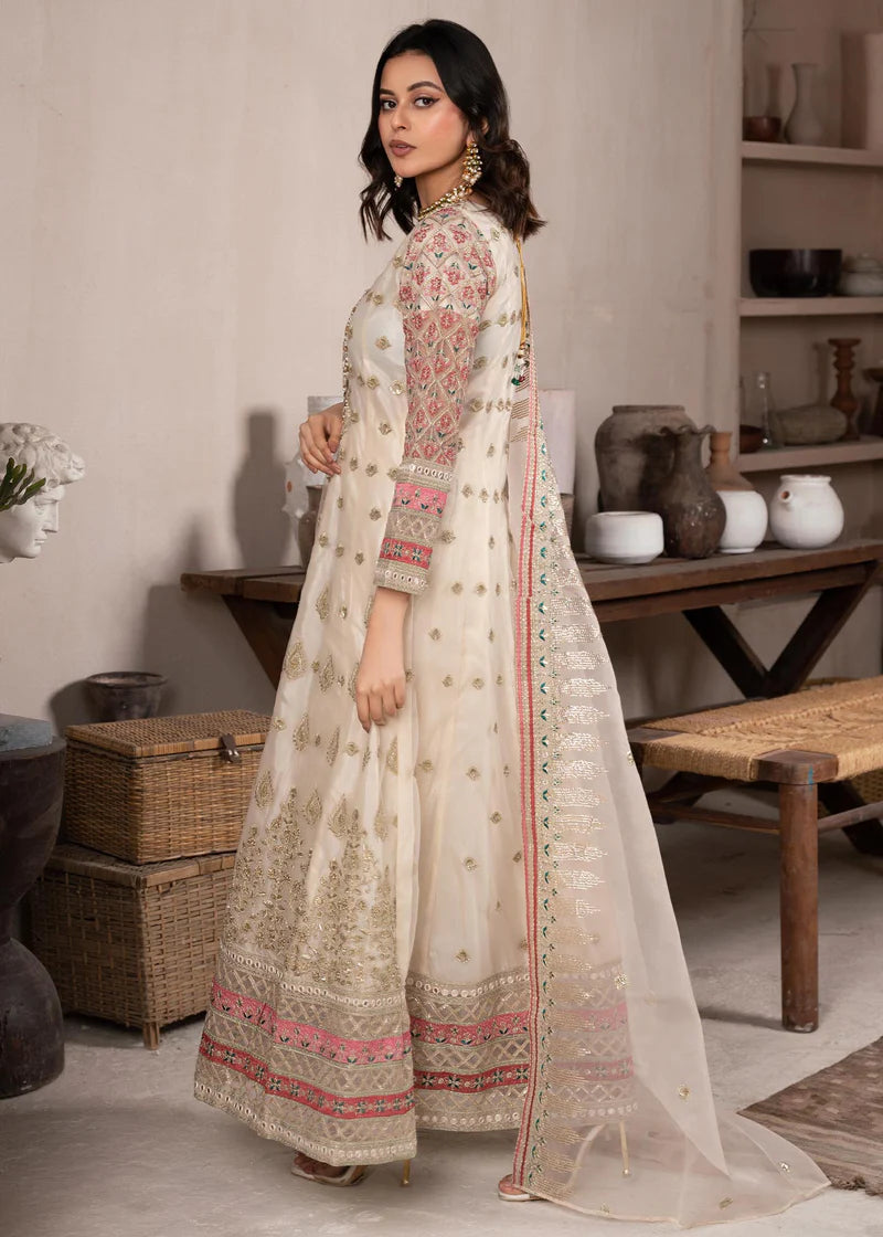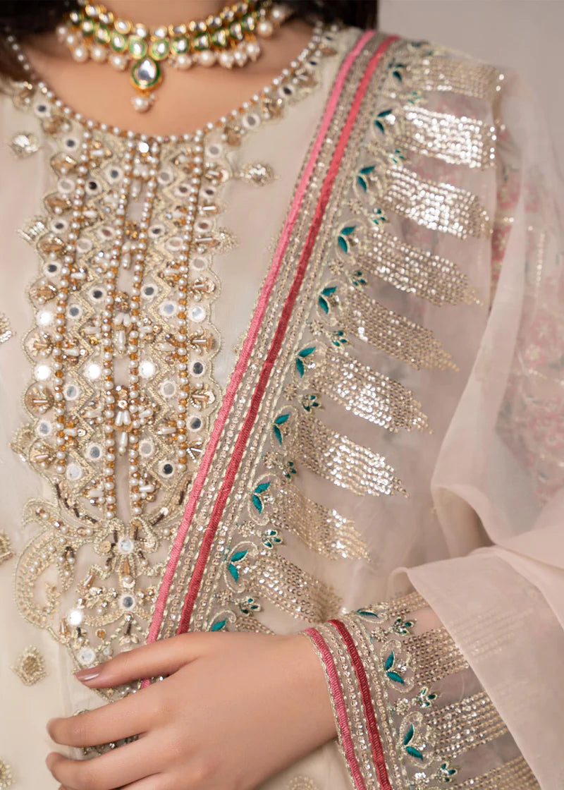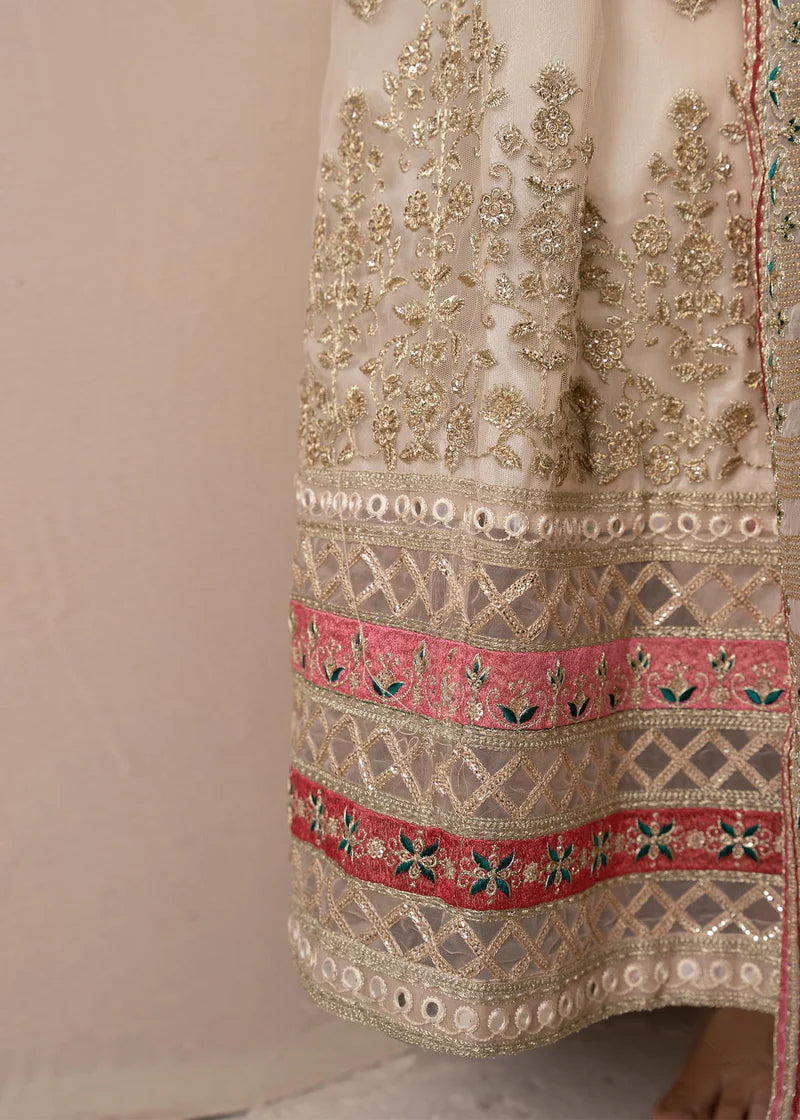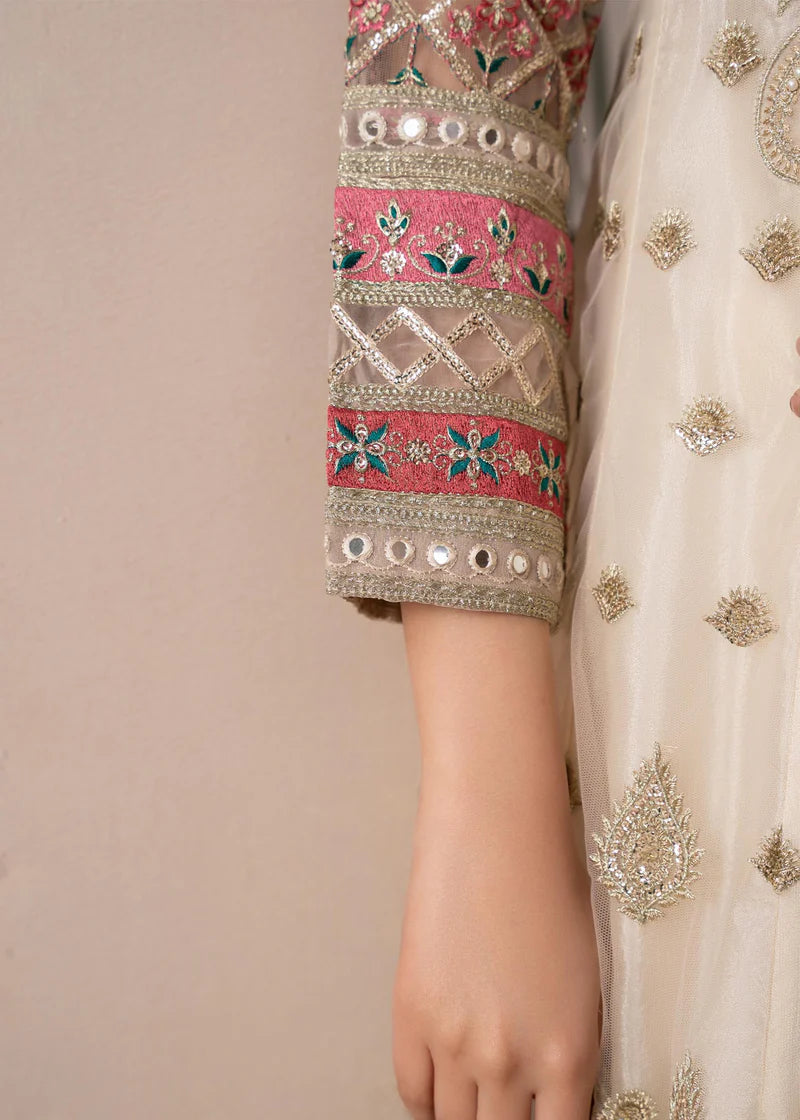 Description: Net embroidered maxi enhanced with adda work. Same base color organza embroidered dupatta. Viscose trouser.