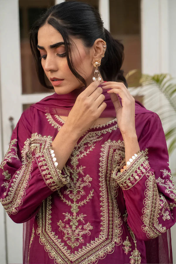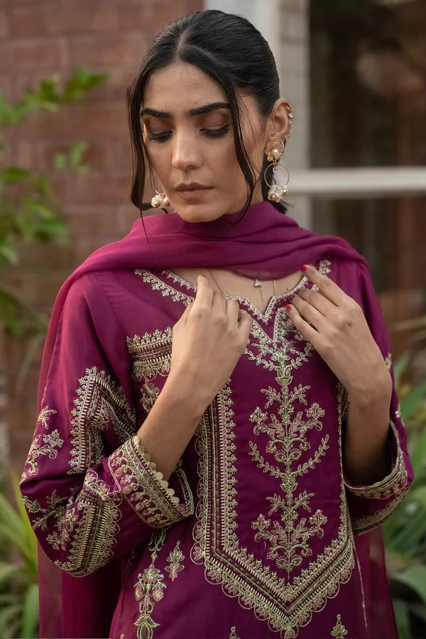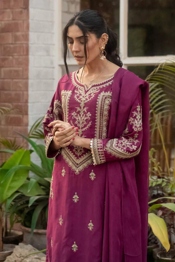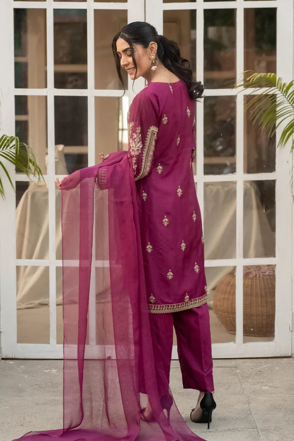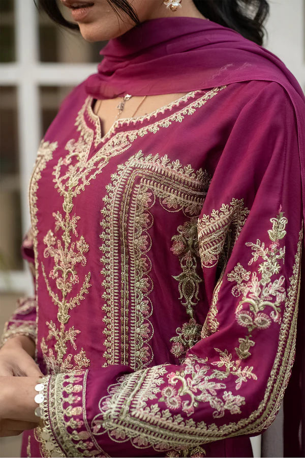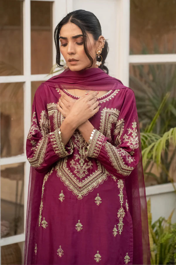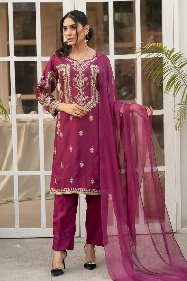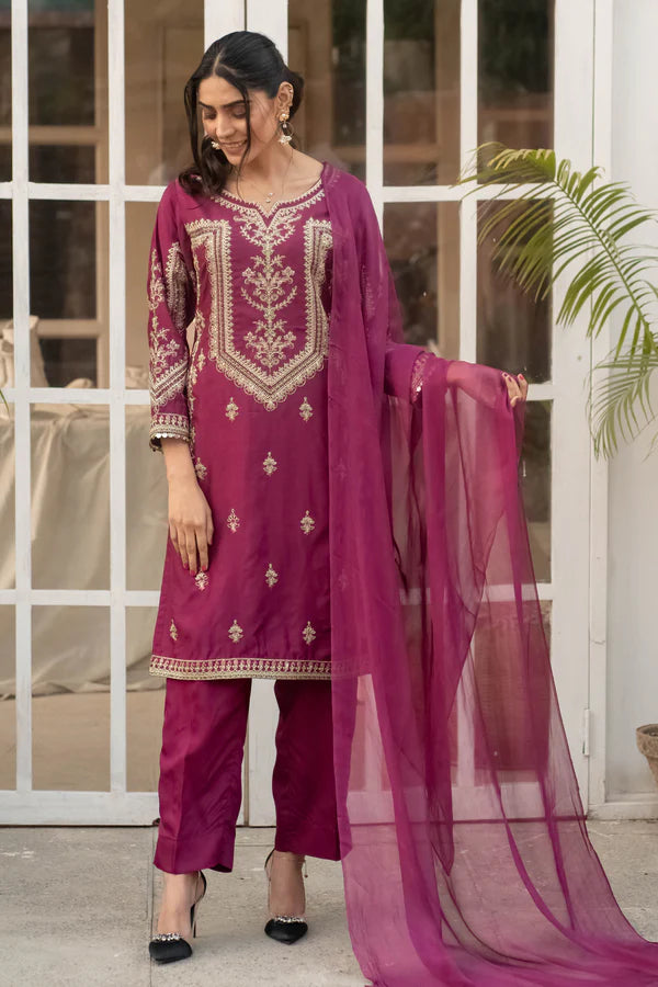 Description: Embroidered on smooth Viscose Shirt, Plain chiffon dupatta and Viscose trouser.