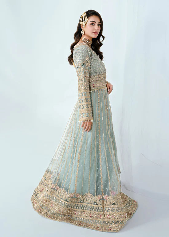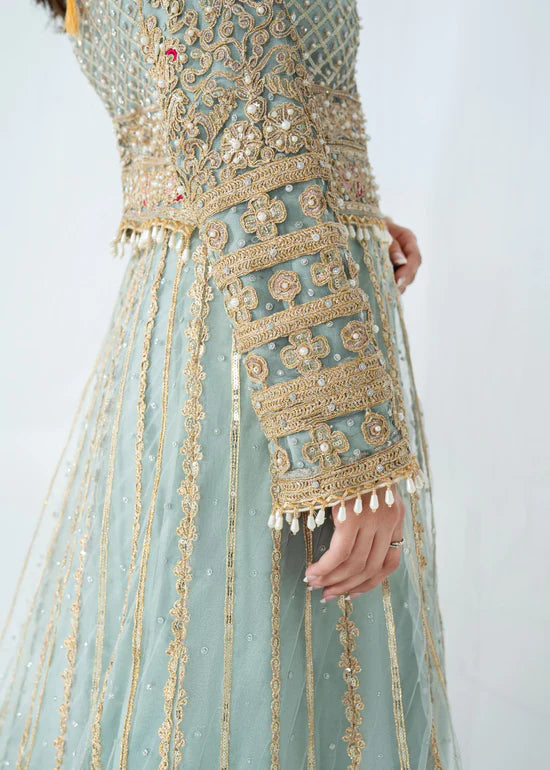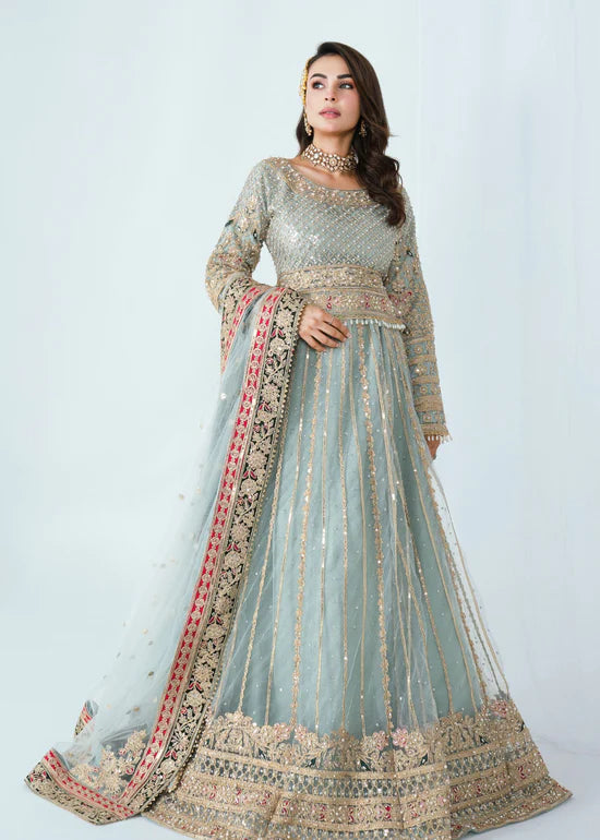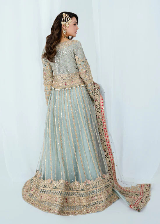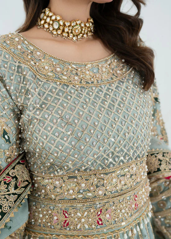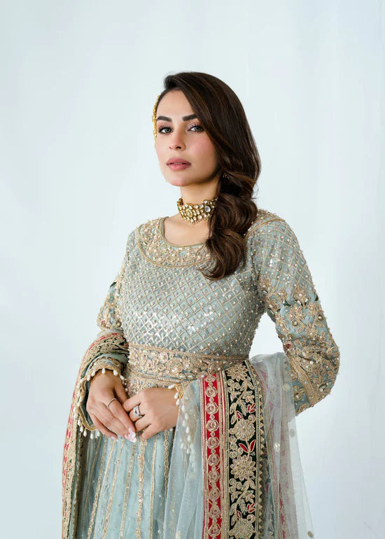 Description: A beautiful three piece stitched Lehenga choli with intricate embroidery further adorned with hand embellishments.