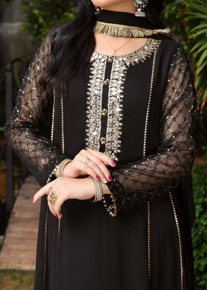 Description: The exquisite embroidered work in vertical patterns of the angrakha, which exudes grace and elegance, is a marvel of craftsmanship and design. The designer's exquisite use of the zari, sitara, and sequin embroidery technique enhances this lovely dress. The wide border of the angrakha at the end reflects the fine craftsmanship. A gorgeous chiffon dupatta with a kiran lace border completes the ensemble. Make use of Mona Embroidery to showcase your individual style and embrace it.