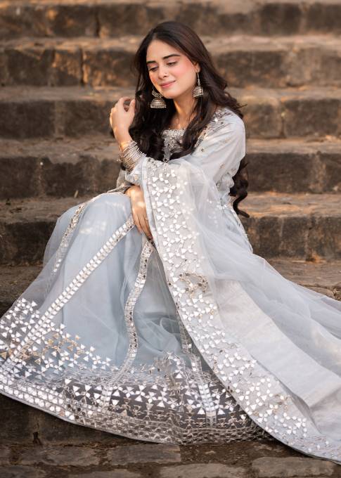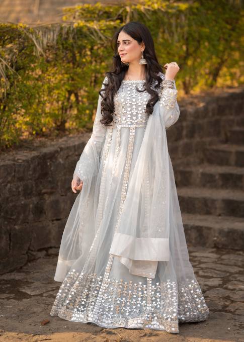 Description: This lovely dress is made on net with raw silk bottom and net dupatta.