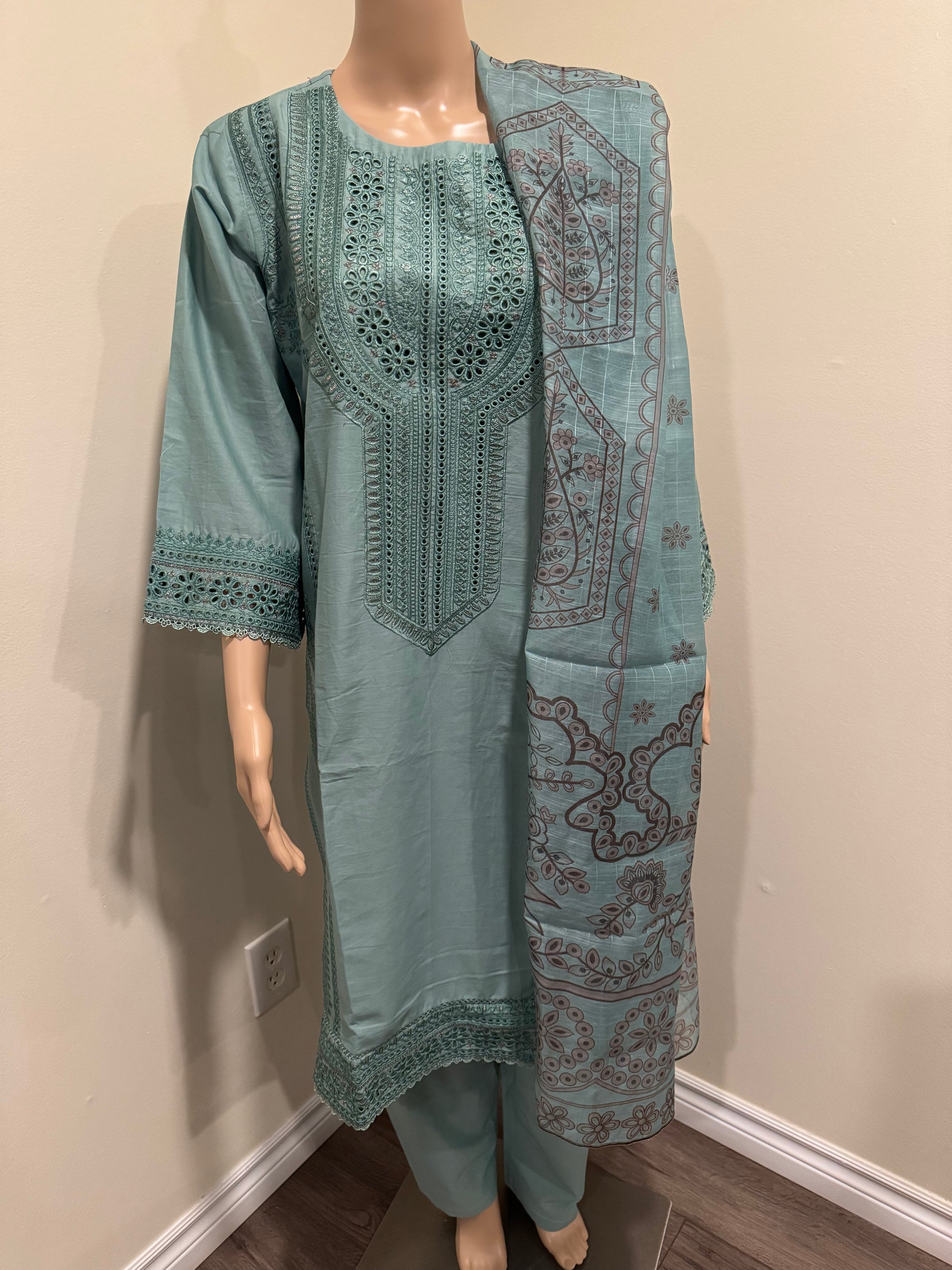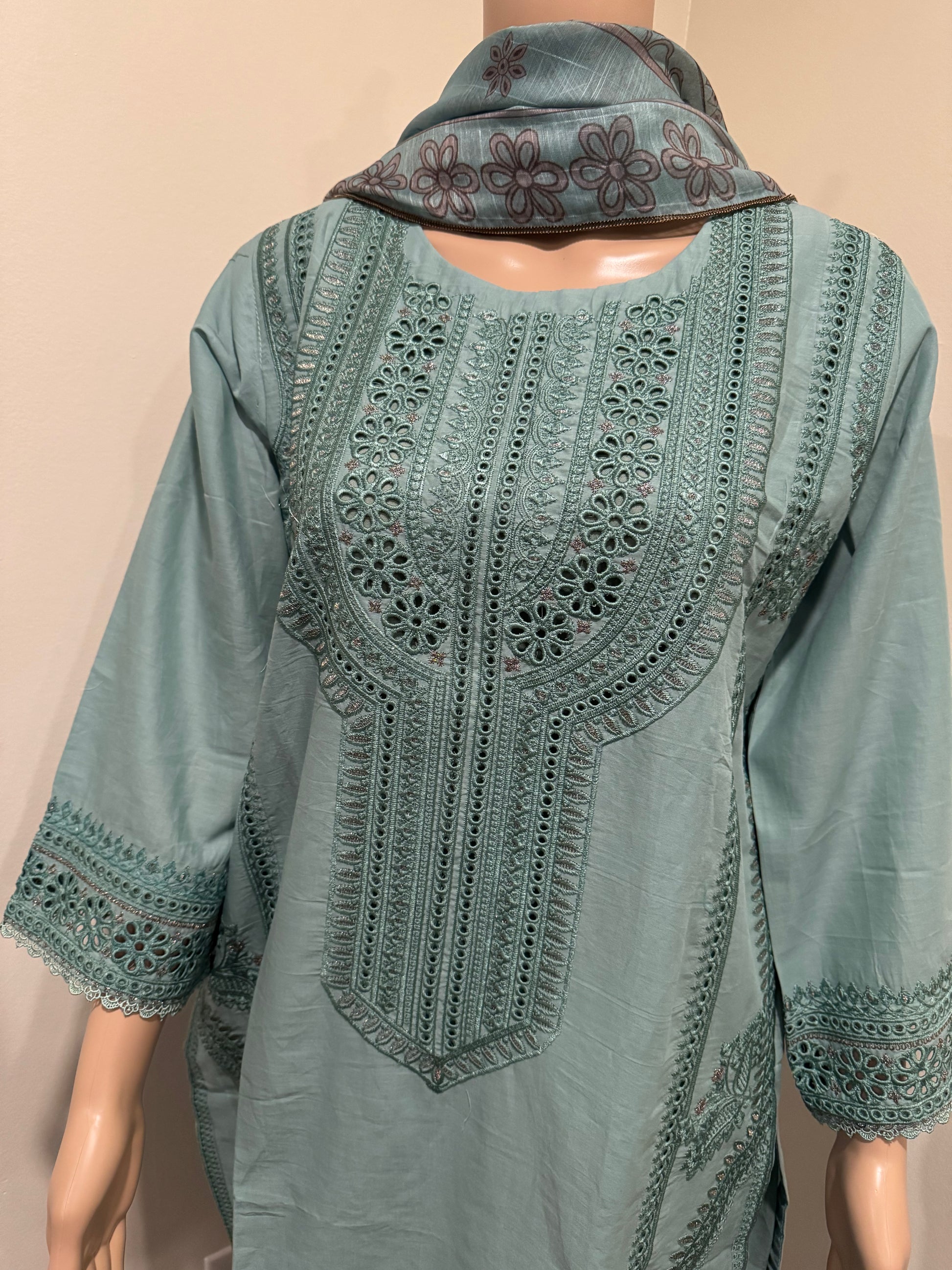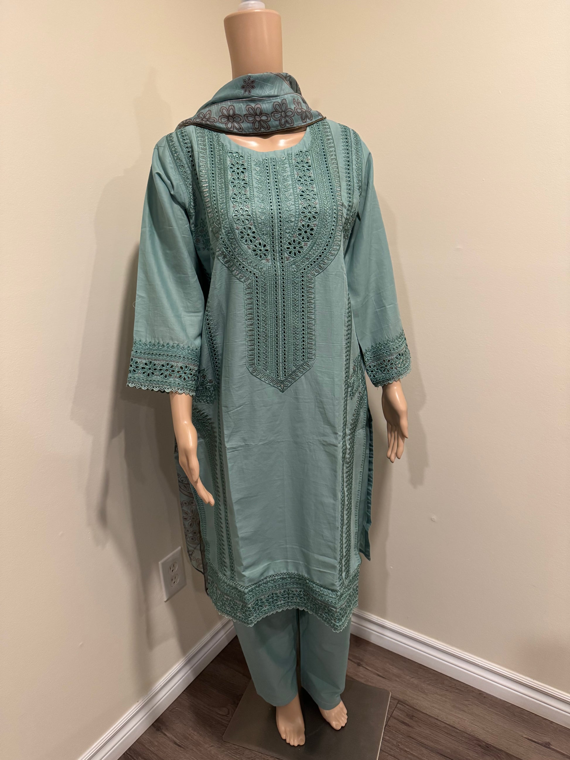 Package Includes: 3 Piece - Top Bottom & Dupatta