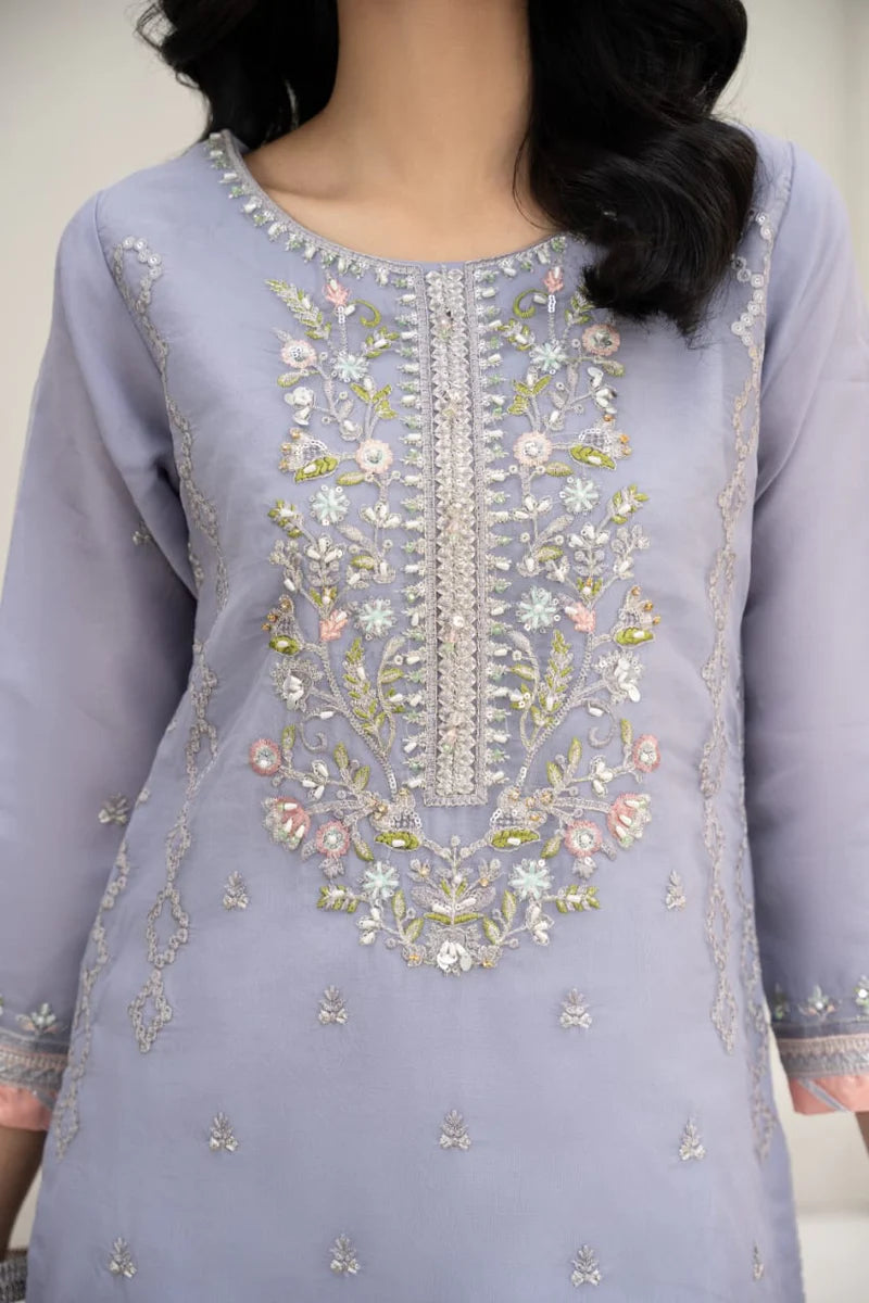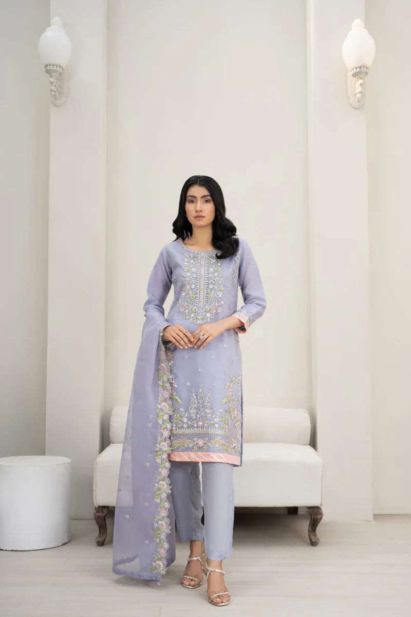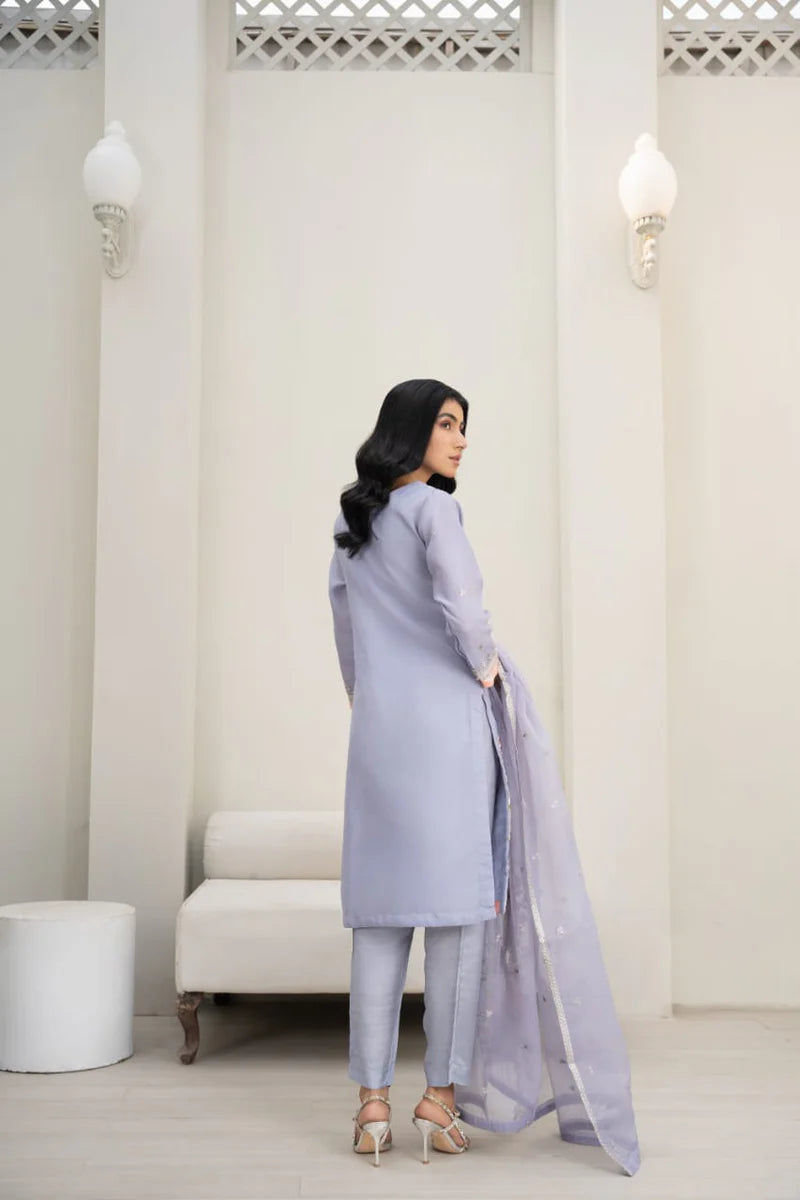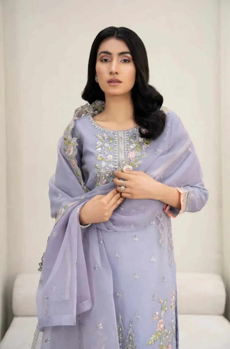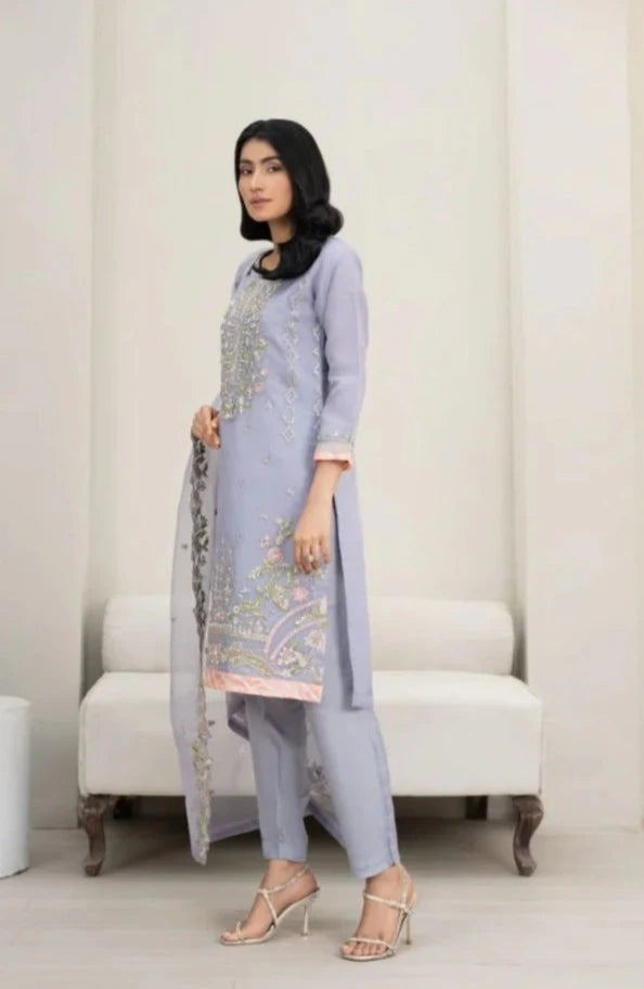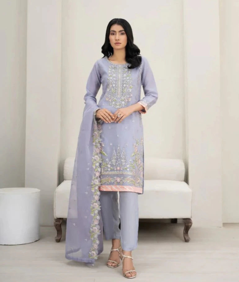 Description: Organza Shirt with Embroidery, Raw Silk Trouser and Organza Dupatta